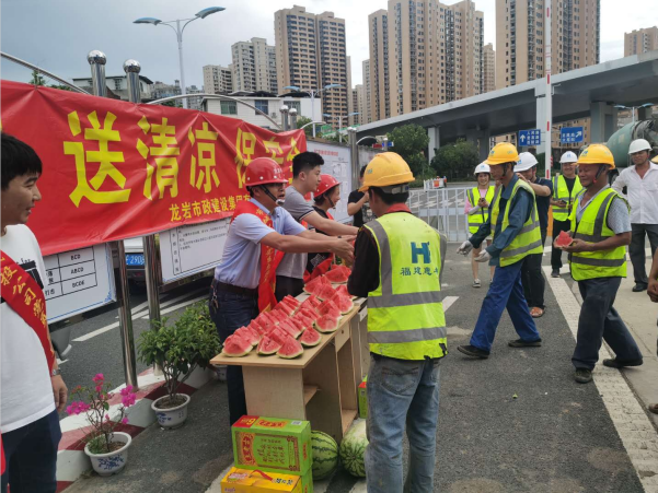 “弟兄們,來吃西瓜、喝涼茶”7月3日大中午,龍巖市政集團(tuán)組織的黨員、志愿者們?yōu)槲玳g在項目現(xiàn)場暫時休息的一線工人們獻(xiàn)上一塊塊甘甜可口西瓜。這是該公司針對近來天氣悶熱特意為一線職工開展的“走項目、送清涼、保安全”活動。班子成員兵分幾路分別帶隊前往龍巖大橋、浮東路、羅橋節(jié)點和龍巖大道二期等重點項目,為現(xiàn)場一線的工人們發(fā)放了西瓜、王老吉和菊花茶等防暑降溫食品,對廣大在一線的員工克服天氣影響,堅守崗位認(rèn)真工作表示感謝!